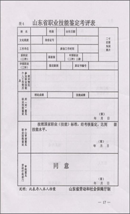后附:山东省职业技能鉴定考评表(表4)
