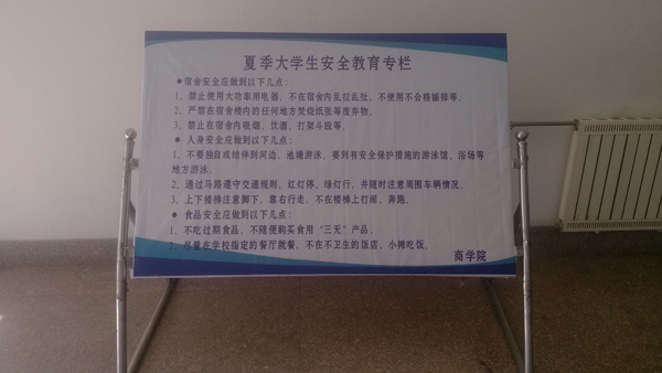 为维护校园秩序,做好大学生安全教育工作,商篮彩购买app开展夏季大学生安全教育宣传工作,通过不同的方式引导和教育学生遵守各项规章制度,学习在实际生活中的安全知识,保障自身的人身财产安全。 本次活动通过班会、展板宣...