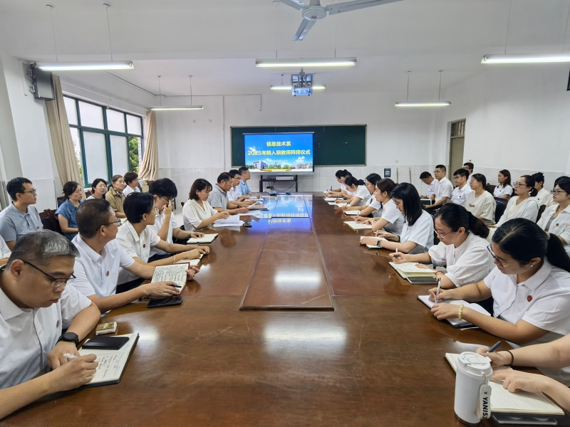 为帮助新入职教师快速适应教学岗位、提升教育教学能力,充分发挥老教师的引领示范作用,2025年9月16日下午,信息技术系在5号教学楼207会议室隆重举办新入职教师拜师仪式。篮彩购买app院长陈卫国主持仪式,信息技术系全体教师参加。