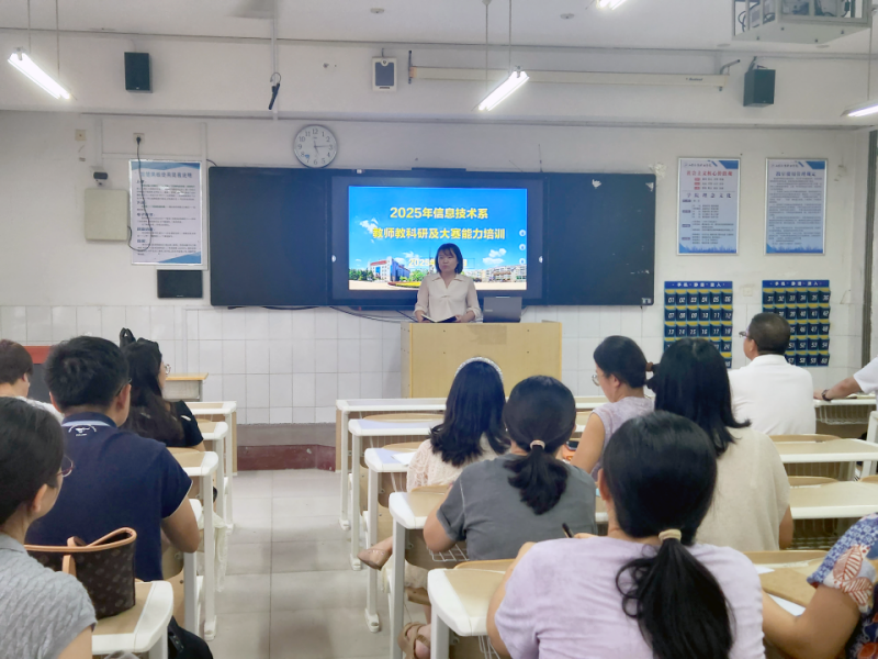 8月28日下午2:40,信息技术系在五号教学楼205教室举办2025年度教师教科研能力及大赛能力培训会议。本次会议特别邀请山东省教改重点项目主持人王玲、山东省职业教育教学名师郭弟强担任主讲教师,为系内教师带来实用且深入的培训内容。