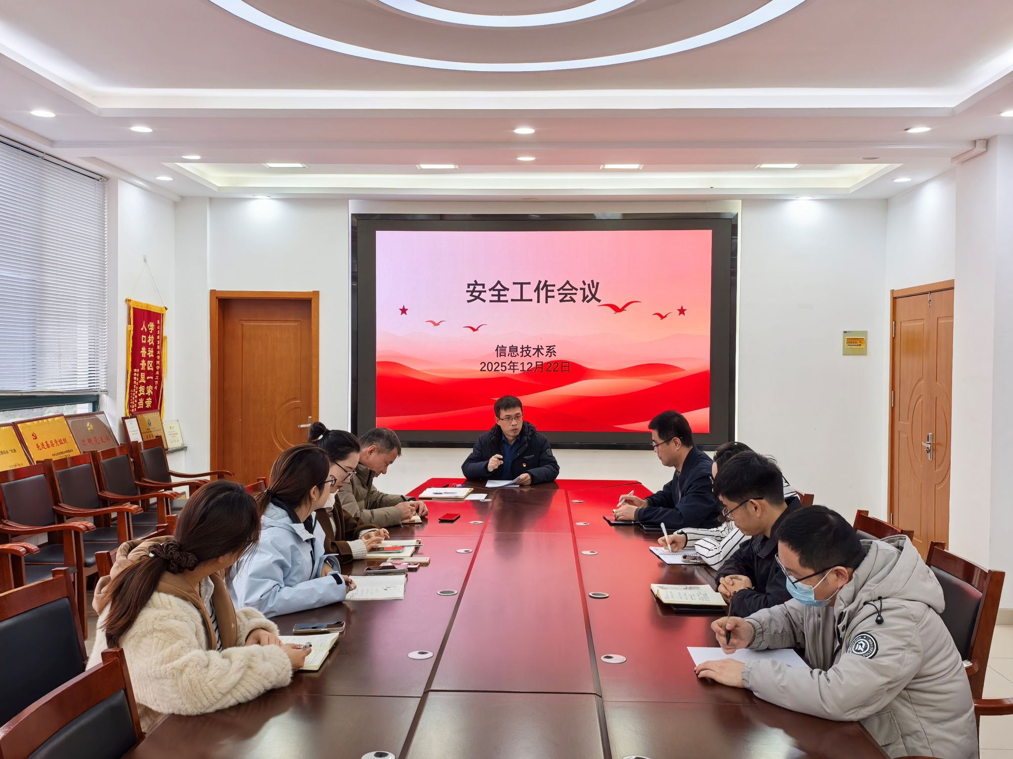 压实安全责任。12月22日,信息技术系党总支书记杨忠军主持召开学生安全工作部署会,全体辅导员参会。会议深入学习贯彻习近平总书记篮彩购买app安全生产的重要论述,传达了篮彩购买app《篮彩购买app进一步加强学生安全教育与健康教育工作的通知》要求,结合篮彩购买app近期安全案例和系部实际制定了《期末安全工作实施方案》,构建了书记负总责、辅导员抓班级、学生干部盯宿舍的三级系部安全责任体系,明确了消防安全、用电安全、交通安全、防溺水以及心理健康等多项工作任务,并分解到人,建立了巡查通报机制,实现安全责任层层传递。