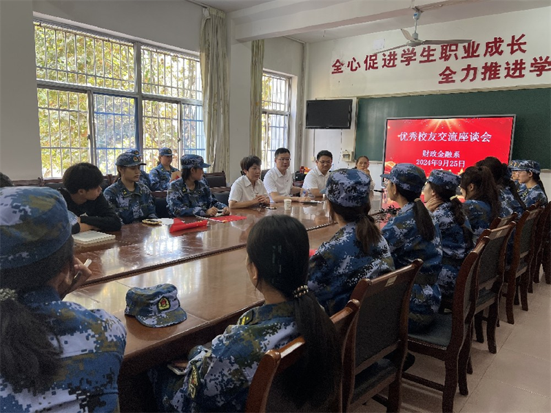 在中华人民共和国成立75周年之际,为加强校友与母校的联系,树立校友榜样,凝聚校友力量,教育引导在校学生做好学业及职业规划,9月25日上午,财政金融系在会议室举办优秀校友交流座谈会。财政金融系主任王建花、系党总支书记付俊花、学生工作处负责人王磊、学生科科长翟云霄、部分2024级新生代表参加会议,会议由付俊花主持。