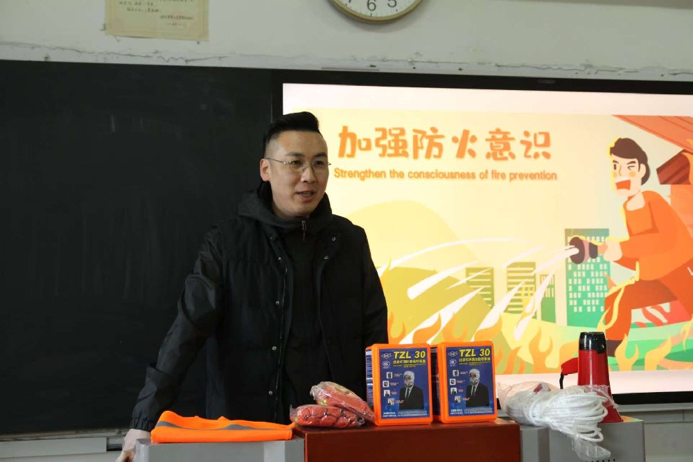 实操教学,疏散演练结束后,潘玉波亲临现场,以专业细致的演示,为师生们手把手传授灭火器“提、看、摇、拔、握、喷”六步法,现场示范正确操作流程,带领大家近距离观摩灭火器扑灭火焰的全过程。生动直观的实操教学,让师生们从“知危险”向“会避险”再到“能处置”稳步迈进,填补了初期火灾应对的技能空白。他强调:“消防安全无小事,演练不是形式,而是守护生命的必要准备。每一次熟练的撤离、每一个规范的动作,都可能成为危急时刻的‘救命符’。”他要求全体师生将消防安全知识内化于心、外化于行,不仅要熟练掌握逃生技能,更要在日常学习生活中杜绝火灾隐患,共同营造“人人讲安全、事事为安全、时时想安全、处处要安全”的校园氛围。