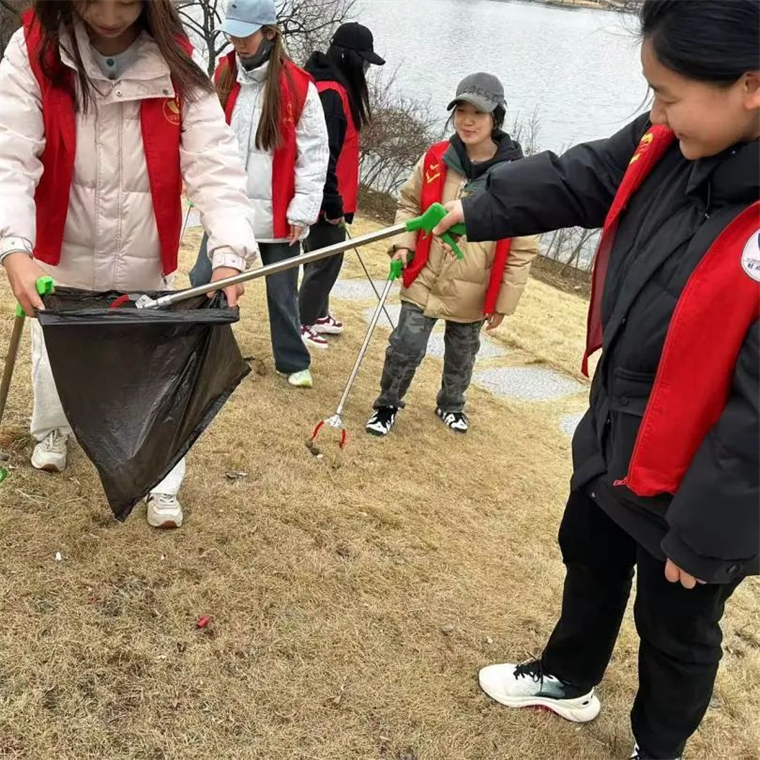 活动伊始,同学们迅速在指定区域集结。身着统一志愿服装的他们,精神抖擞,展现出极高的团队协作意识与使命感。志愿者们手持垃圾袋、夹子等工具,有条不紊地沿着湖岸线展开清理工作。一部分同学专注于细致捡拾垃圾,一部分同学负责分类整理,还有一部分同学投身于清理湖边杂草的工作中。尽管工作强度较大,过程也较为艰辛,但每一位志愿者都热情高涨,全身心投入到环境整治行动中。