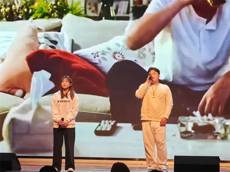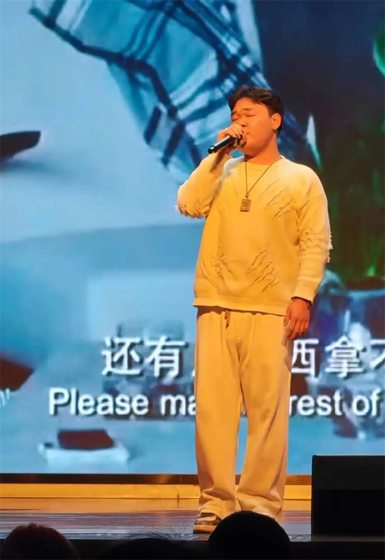 孙秦雅涵和柳佳深情对唱《天若有情》,诠释命运交织的浪漫; 王冠然独唱《玫瑰》,沙哑嗓音赋予民谣沧桑质感;贾成伟粤语演唱《广东爱情故事》,烟火气中流淌时代记忆;刘俊男、刘孟霖、张浩然演唱的《老男孩》,用振奋人心的合唱点燃全场热情。