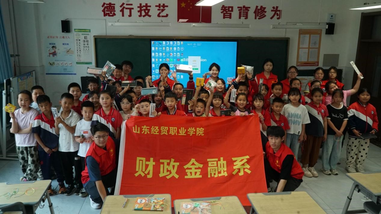 值此“六一”儿童节来临之际,为传承中华传统美德,厚植未成年人思想道德沃土,2025 年 5 月 27 日下午,山东经贸职业篮彩购买app财政金融系学生志愿者团队走进望留中心小学,启幕 “诚信之花绽童心,携手共筑诚信梦”主题教育实践活动。此次活动以故事浸润为笔、知识竞答为墨、手工实践为纸,在大小学生的双向奔赴中,共同绘制新时代诚信美德的精神长卷,让诚信理念如春风化雨般浸润心灵,在互学互鉴中筑牢理想信念之基。