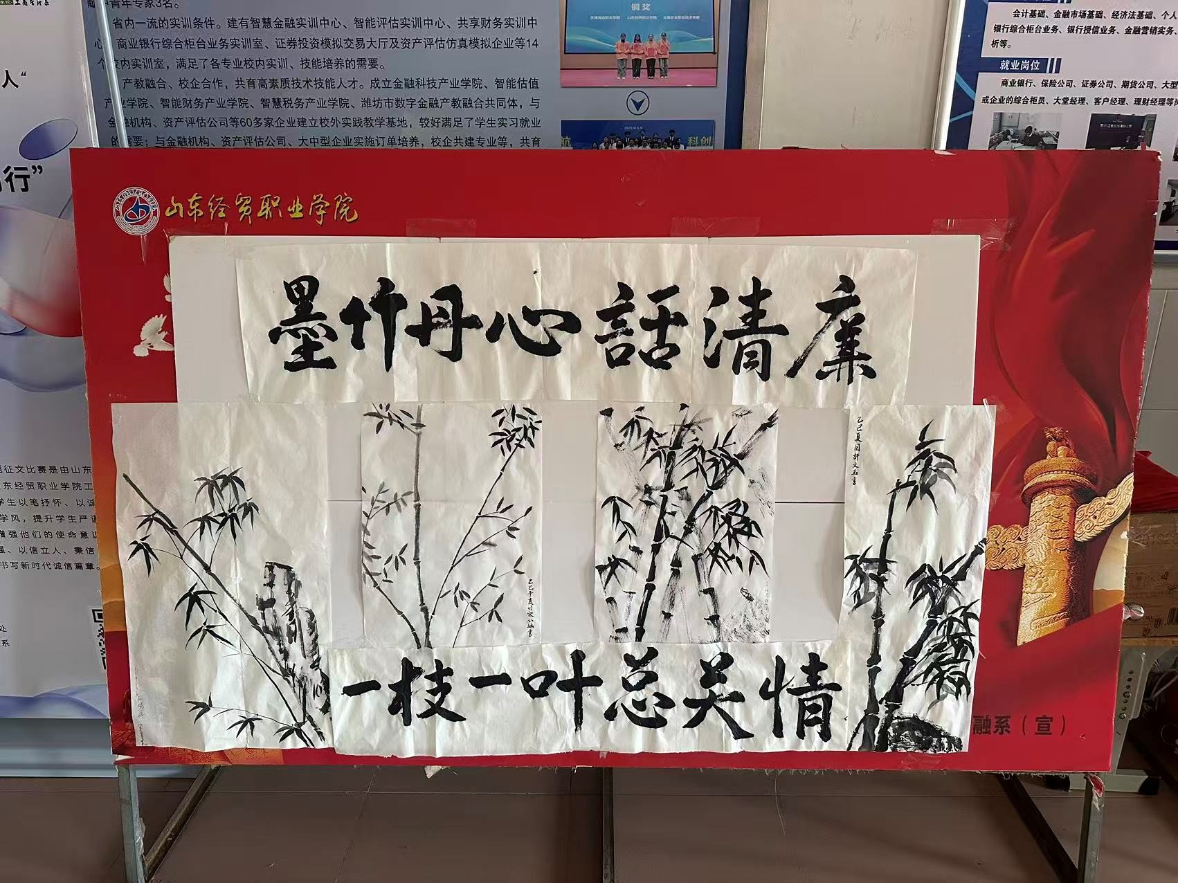 活动核心环节 “墨竹丹心” 书画比赛同步进行。绘画组水墨写意勾竹刚直,借板桥 “删繁就简” 笔法融清廉意象;书法组书 “墨竹丹心话清廉” 等廉诗,以现代设计焕新传统。笔端致敬板桥 “以竹自喻”,让廉洁品格从历史走入当下。