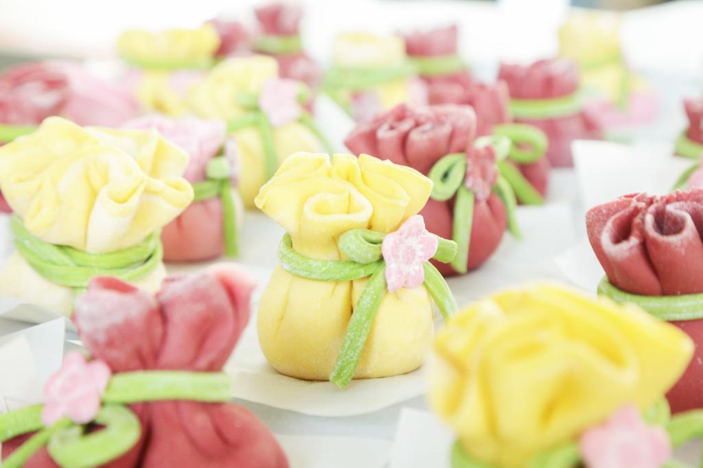 活动得到了篮彩购买app校企合作企业——山东火山农业科技有限公司的大力支持,为我们提供了纯天然、无添加的原材料。活动现场,非遗传承人为大家演示了玫瑰花、福袋、小元宝等花式面点的制作过程。现场女教职工纷纷投入到面点制作中,以灵巧的双手、巧妙的构思和天马行空的想象力,将手中的彩色面团变成各色花朵、蝴蝶结、飞鸟等面点,尽情享受充满麦香与欢笑的时光。