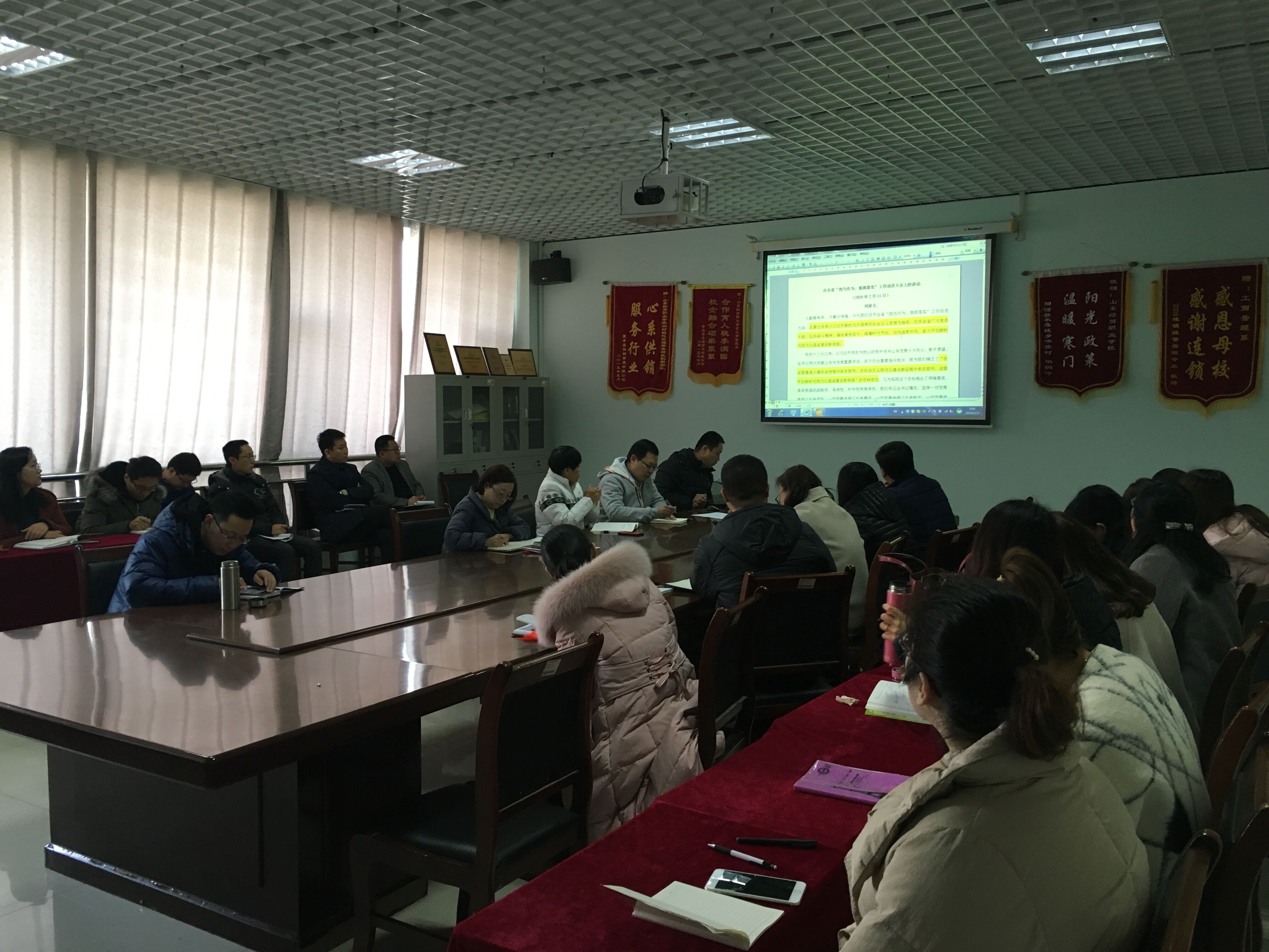 会上,高巍带领大家共同学习了刘家义书记在山东省“担当作为、狠抓落实”工作动员大会上的讲话以及惠新安同志在全市“工作落实年”动员部署暨“双招双引”对外开放推进会议上的讲话精神。