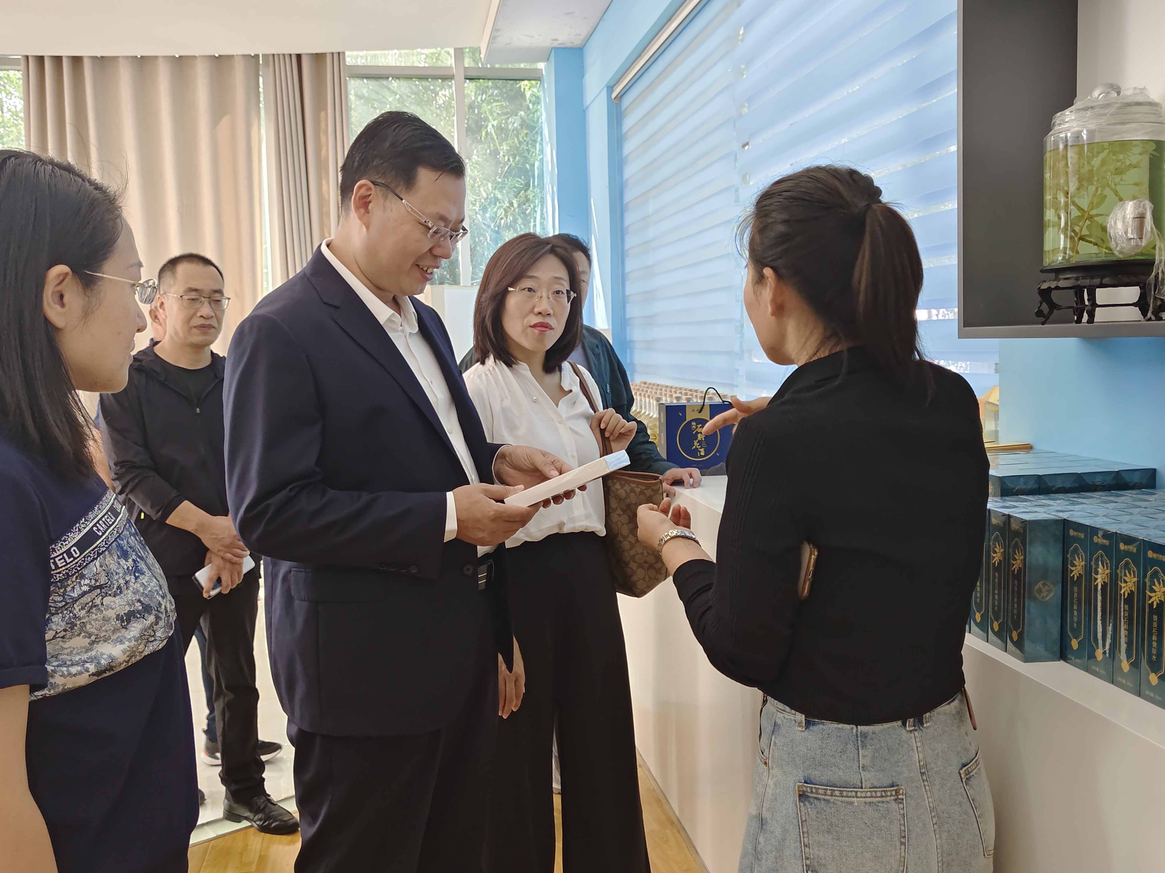 高义丰分别向两家企业介绍了篮彩购买app基本情况、工商管理系特色优势专业、学生实习实训情况以及全国现代商贸流通行业产教融合共同体建设情况。