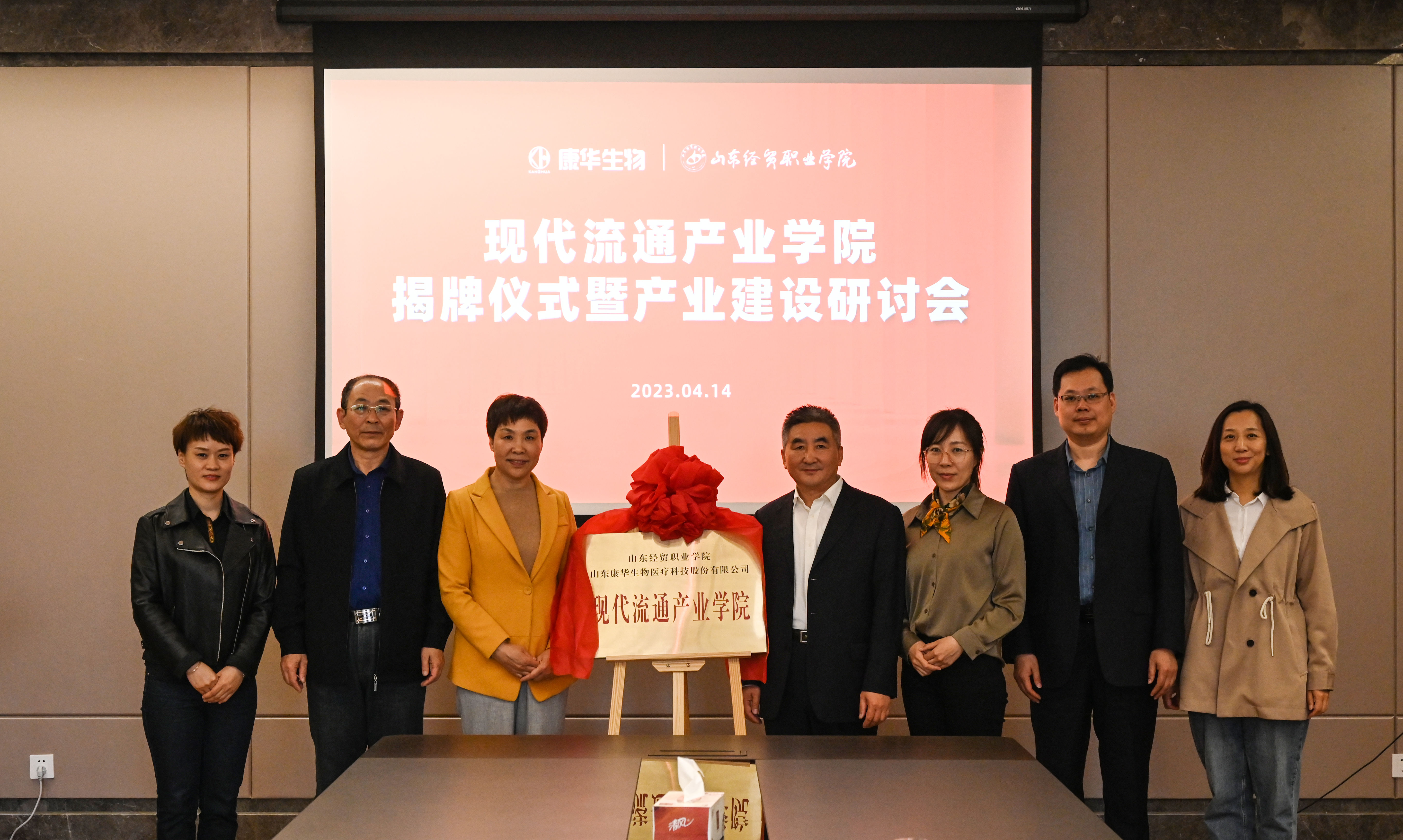 为深入贯彻党的二十大精神,贯彻落实新《职教法》精神,充分发挥企业产业优势,深化产教融合,创新现代流通产业篮彩购买app建设模式,提升篮彩购买app:现代商品流通类专业人才培养能力,4月14日下午,篮彩购买app与山东康华生物医疗科技股份有限公司共同举办现代流通产业篮彩购买app揭牌仪式及学术交流研讨会。