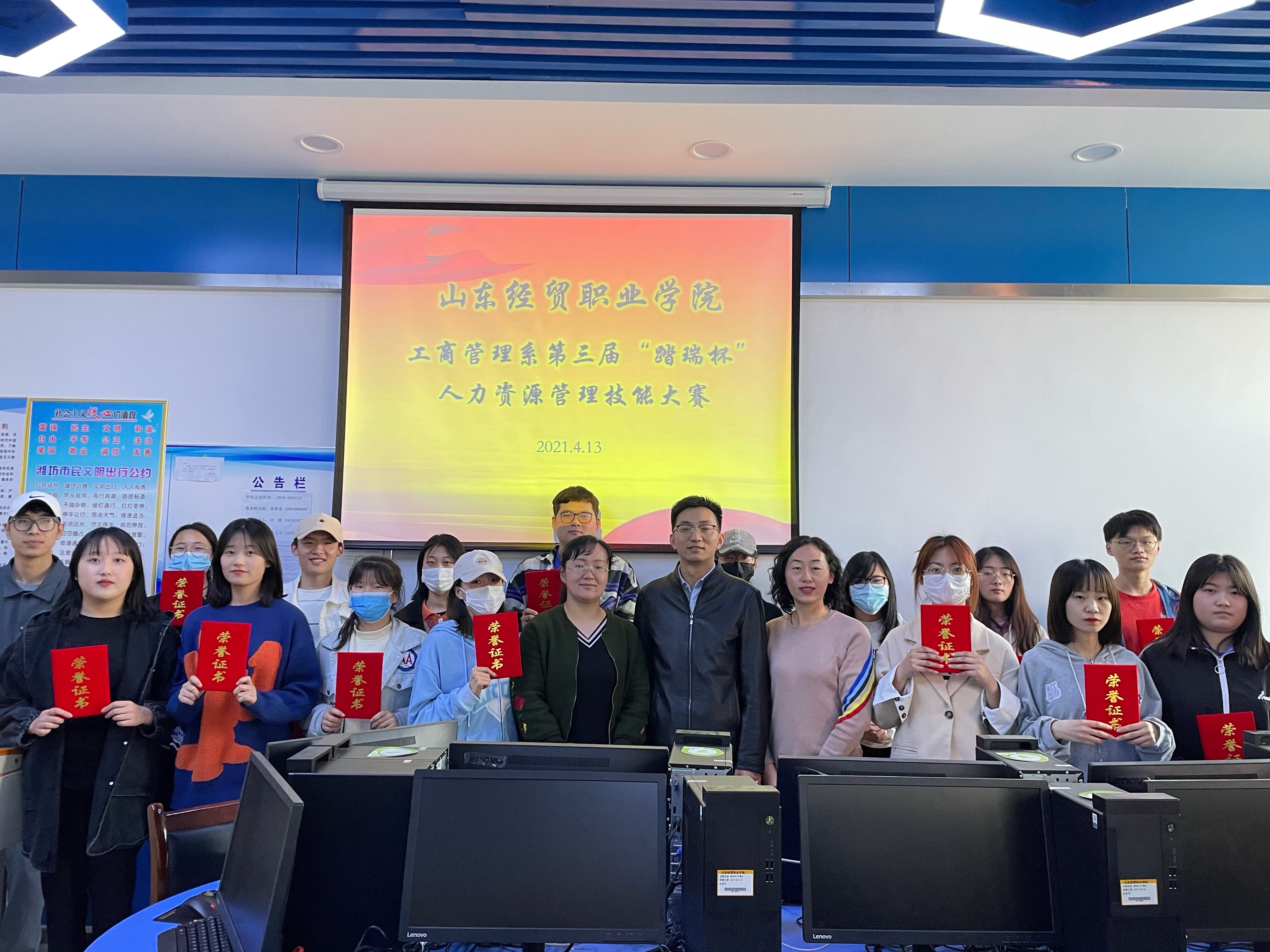 4月13日,工商管理系在人力资源管理综合实训室举办第三届“踏瑞杯”人力资源管理技能大赛,共16支队伍参加比赛。