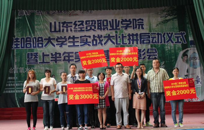 大会对篮彩购买app:在娃哈哈全国市场营销大赛校园排名赛获奖团队及2014年第二季度娃哈哈全国市场营销教育实践基地活动优秀团队、个人进行了表彰。第二季度活动中,篮彩购买app:参赛学生在方案策划和销售实战两个部分均获得山东省一等奖。策划案在全国参赛的426所本专科院校评比中,以第7名的成绩获全国三等奖。