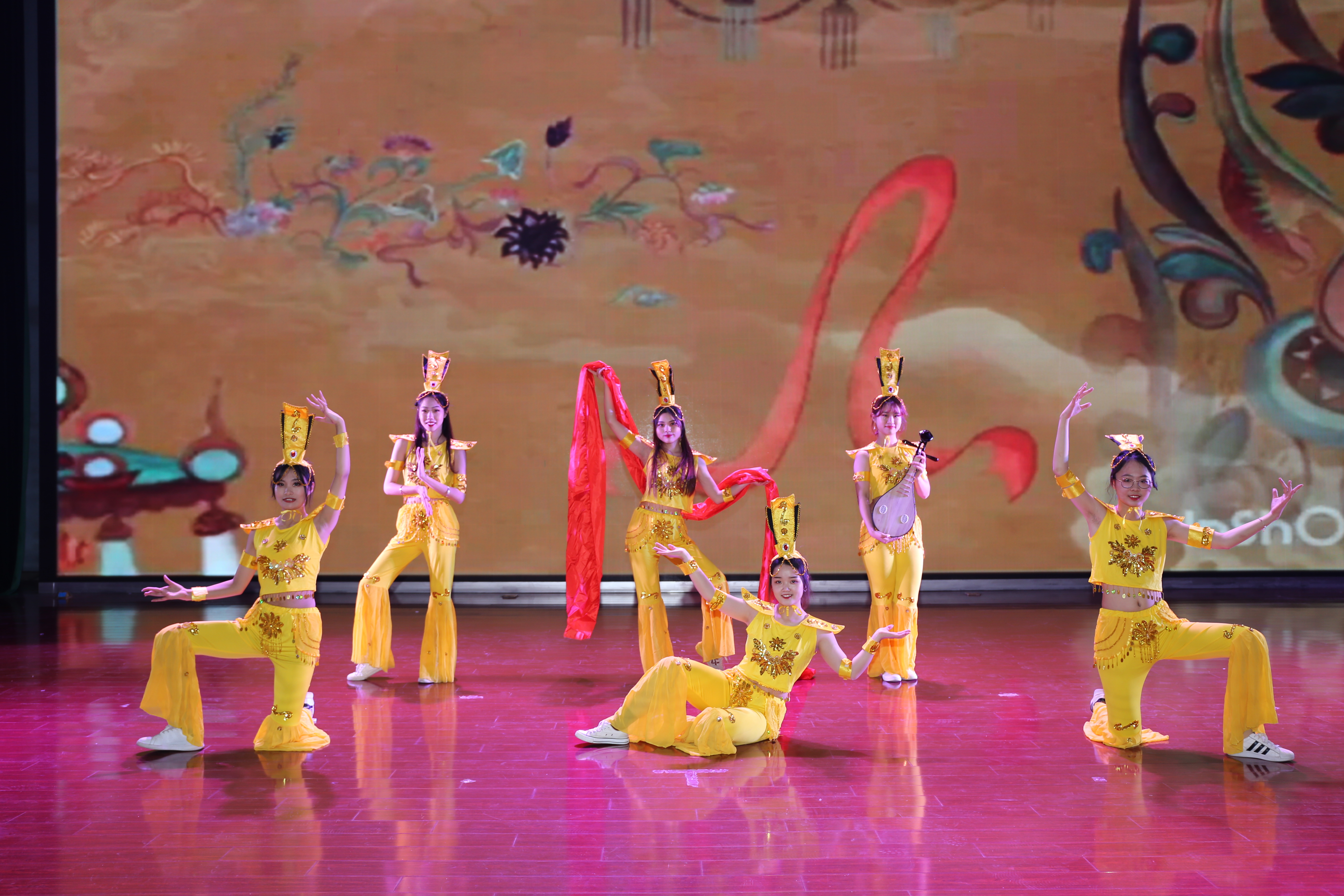 辞旧岁放歌起舞展风采,迎新年满怀希望话未来。晚会在热情奔放、红红火火的开场舞《盛世欢歌》中正式拉开了序幕。柔软优美、长袖飘飘的汉代舞蹈《人间值得》;纤细秀丽、婀娜多姿的敦煌舞蹈《飞天之路》;动感奔放、火力全开的爵士舞蹈《梦幻狂潮》;妖娆妩媚、风情万种的港风舞蹈《金陵十三钗》等轮番上演,赢得了现场观众的阵阵喝彩;幽默风趣、口吐莲花的相声表演《妙峰山》,极具感染力、亲和力,口语化的幽默搞笑脱口秀节目《百变男孩》,带给大家欢乐的同时,激励同学们要趁年轻奋勇拼搏、励志成才;节奏明快、动感十足、青春靓丽、魅力四射的模特表演《靓仔靓女T台秀》场上场下一起互动、嗨翻全场;《青春的我们》、《父亲写的散文诗》、《最美的太阳》等抒情歌曲更是一次次将晚会推向高潮。最后,晚会在全场师生共唱的歌曲《我和我的祖国》中落下帷幕。