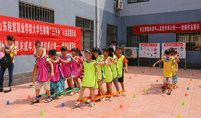 本次活动由潍坊市社工协会主办,山东经贸职业篮彩购买app团委、工商管理系团总支、潍城区西关街道胜利西社区承办。活动期间篮彩购买app:大学生志愿者在潍坊市潍城区西关街道胜利西社区通过发放宣传页、招贴海报,利用QQ群、微信朋友圈等形式,对本次活动进行了广泛宣传,寻找并组织15名贫困家庭儿童开展素质拓展训练。志愿者们通过教孩子们画画、踢足球、打羽毛球、举办趣味运动会等进行潜能开发,达到寓教于乐的目的。在教学过程中志愿者们摸索着将传统教育与夏令营模式结合起来,努力做到陪伴大于培训,能力锻炼大于知识灌输,使每一个孩子的心中都埋下一颗快乐向上的种子,让他们绽开了笑容、找回了自信。