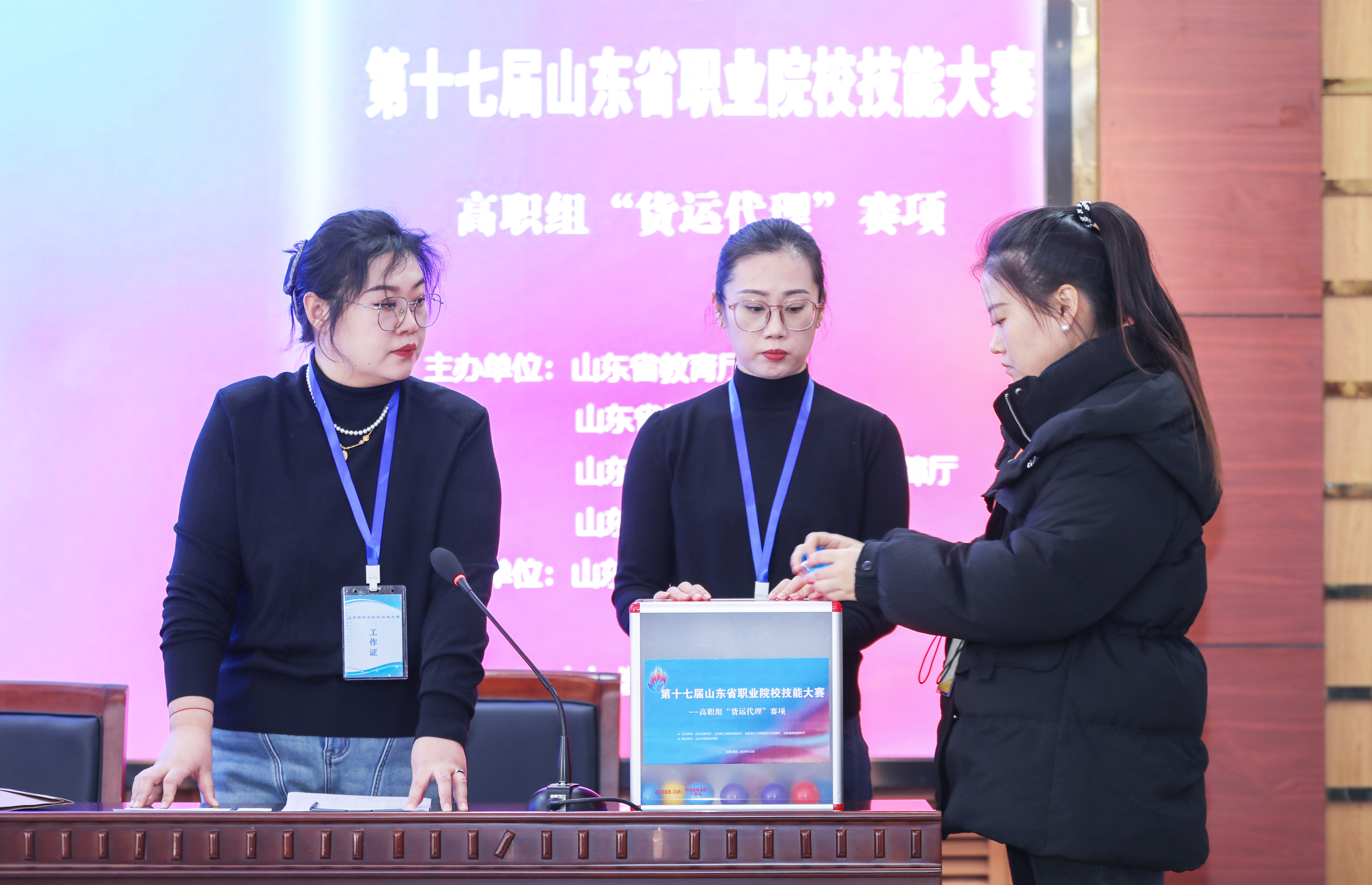 12月18日,由山东省教育厅、山东省工业和信息化厅、山东省人力资源和社会保障厅、山东省农业农村厅主办,山东经贸职业篮彩购买app承办的第十七届山东省职业院校技能大赛高职组“货运代理”赛项开赛式在篮彩购买app:第二报告厅举行。山东经贸职业篮彩购买app党委副书记、院长陈卫国,专家组组长、赛项裁判长,赛项监督仲裁长齐涛出席开赛式。山东经贸职业篮彩购买app副院长张强出席并主持开赛式。各参赛队领队、指导教师、参赛选手参加开赛式。