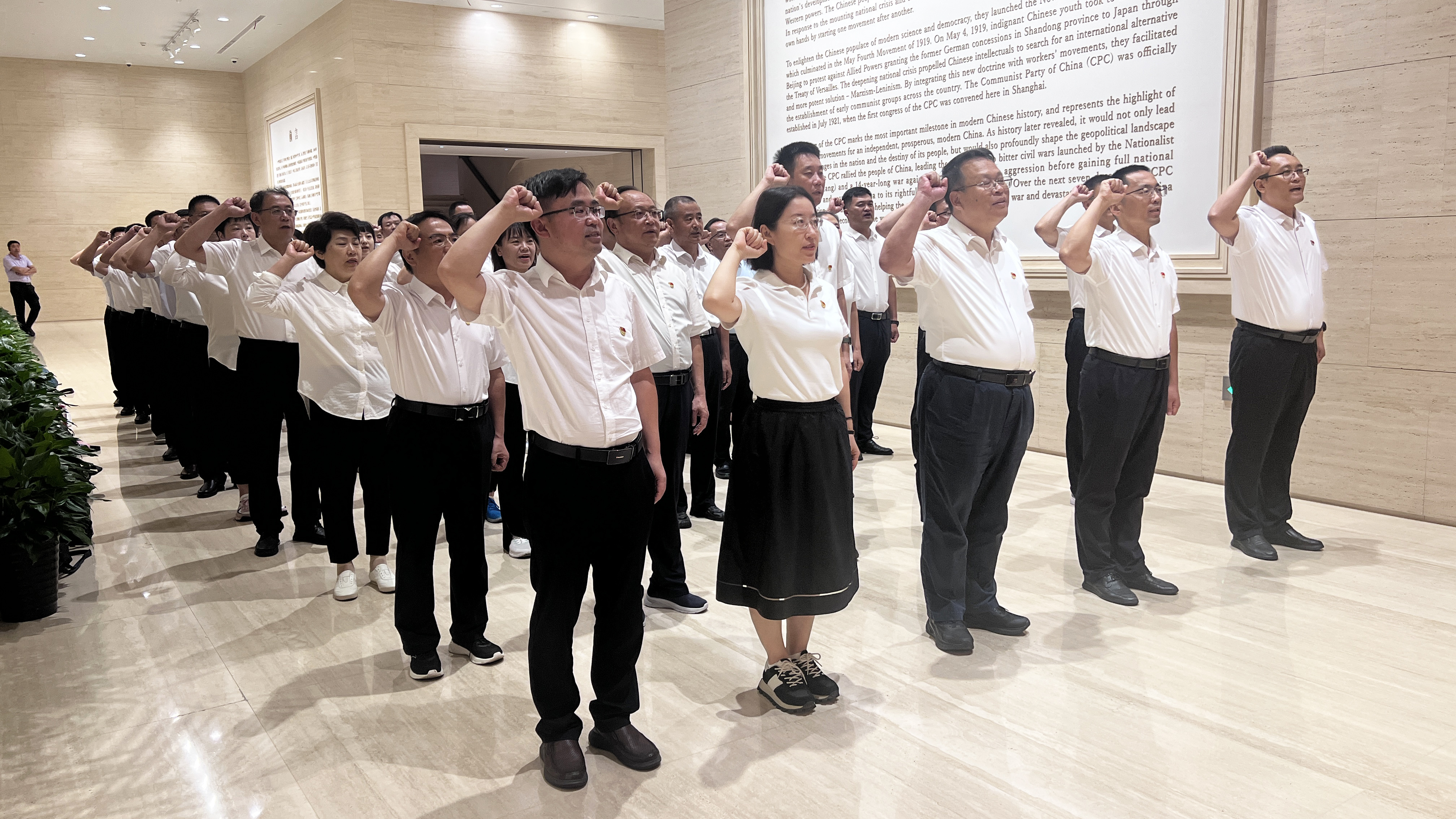在中共一大旧址纪念馆,全体党员重温入党誓词,重学建党历史,追忆共产党人的初心和使命,坚定理想信念,强化使命担当。