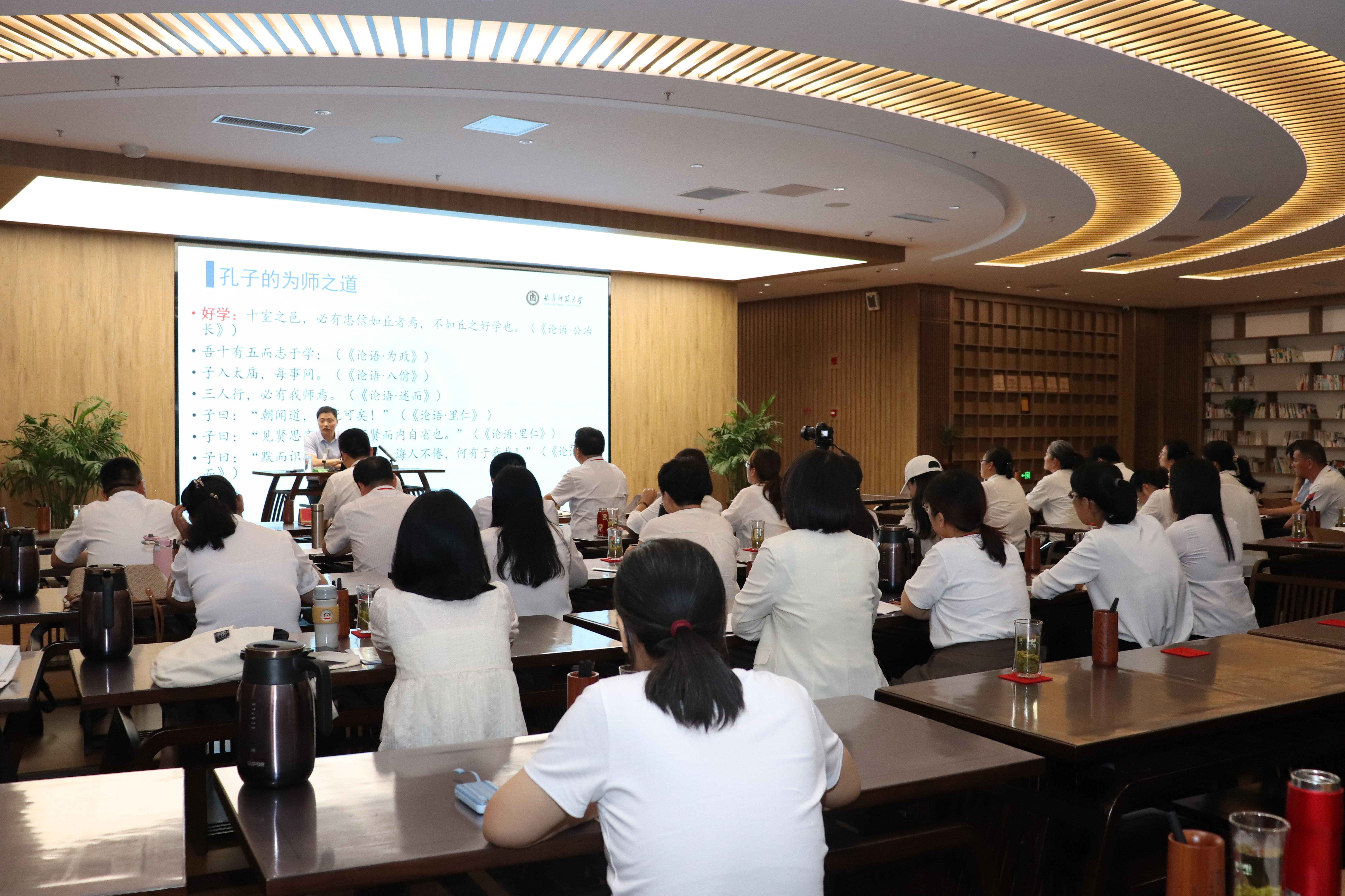 中国教师博物馆副馆长、教授刘永博士作《传承师道精神,争做新时代教育家》的专题讲座。他从两方面阐释了新时代高校教师立德之道。一是汲取传统师道精华,涵养君子之风,通过鲜活生动的历史故事和典故,讲述以孔子为代表的中国历代著名教育家的教育理念。二是践行教育家精神,勇担立德树人使命,通过讲述当代优秀教师事迹,阐述教育家精神的基本内涵,使学员更深刻地领悟新时代教育家精神,修师德、强师能、塑师风、铸师魂。