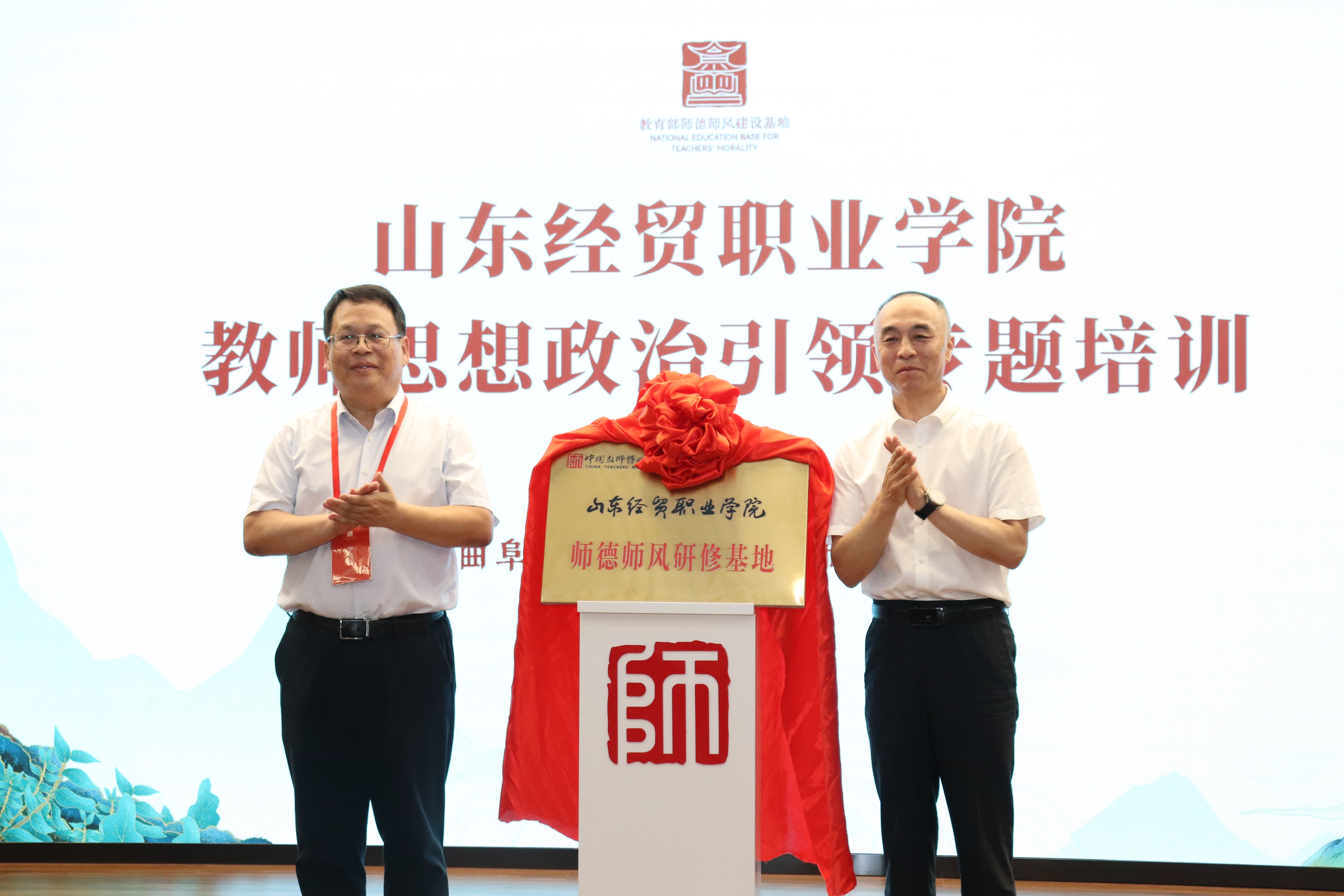 在开班仪式上,曲阜师范大学副校长李兆祥,篮彩购买app党委副书记王炳华分别致辞,并为“山东经贸职业篮彩购买app师德师风研修基地”揭牌。