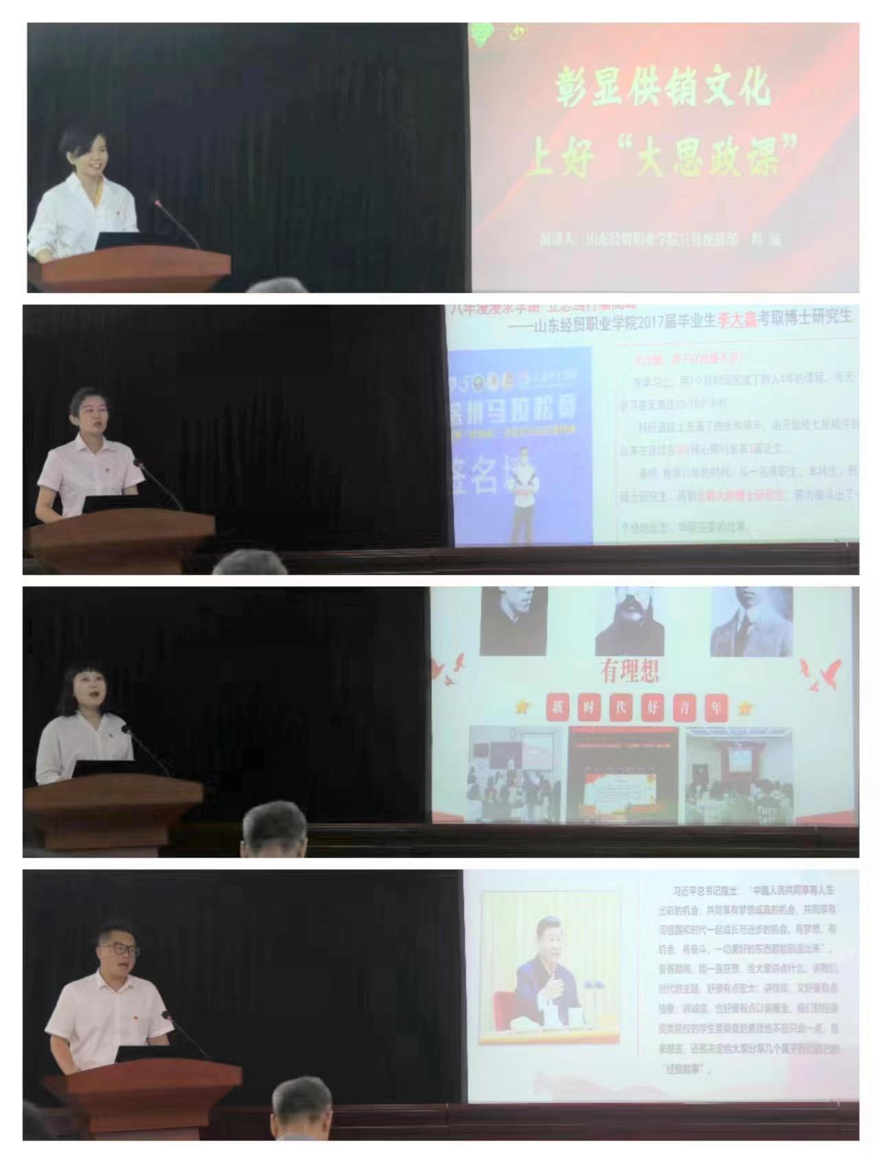 篮彩购买app青年干部程诚、王欢欢、王青青、孙彬结合自身工作实际,分别以《彰显供销文化 上好“大思政课”》《青春逢盛世 奋斗正当时》《坚定理想信念 把握青春航向》《讲好经贸故事 传承经贸传统》为题,全面展现全院上下深入学习贯彻习近平新时代中国特色社会主义思想,落实立德树人根本任务,发挥供销行业优势,打造农村现代商贸流通人才培养主阵地,引导青年学子将个人追求融入打造乡村振兴齐鲁样板的宏伟蓝图,为强国建设、民族复兴的伟大征程贡献青春力量的奋斗图景。