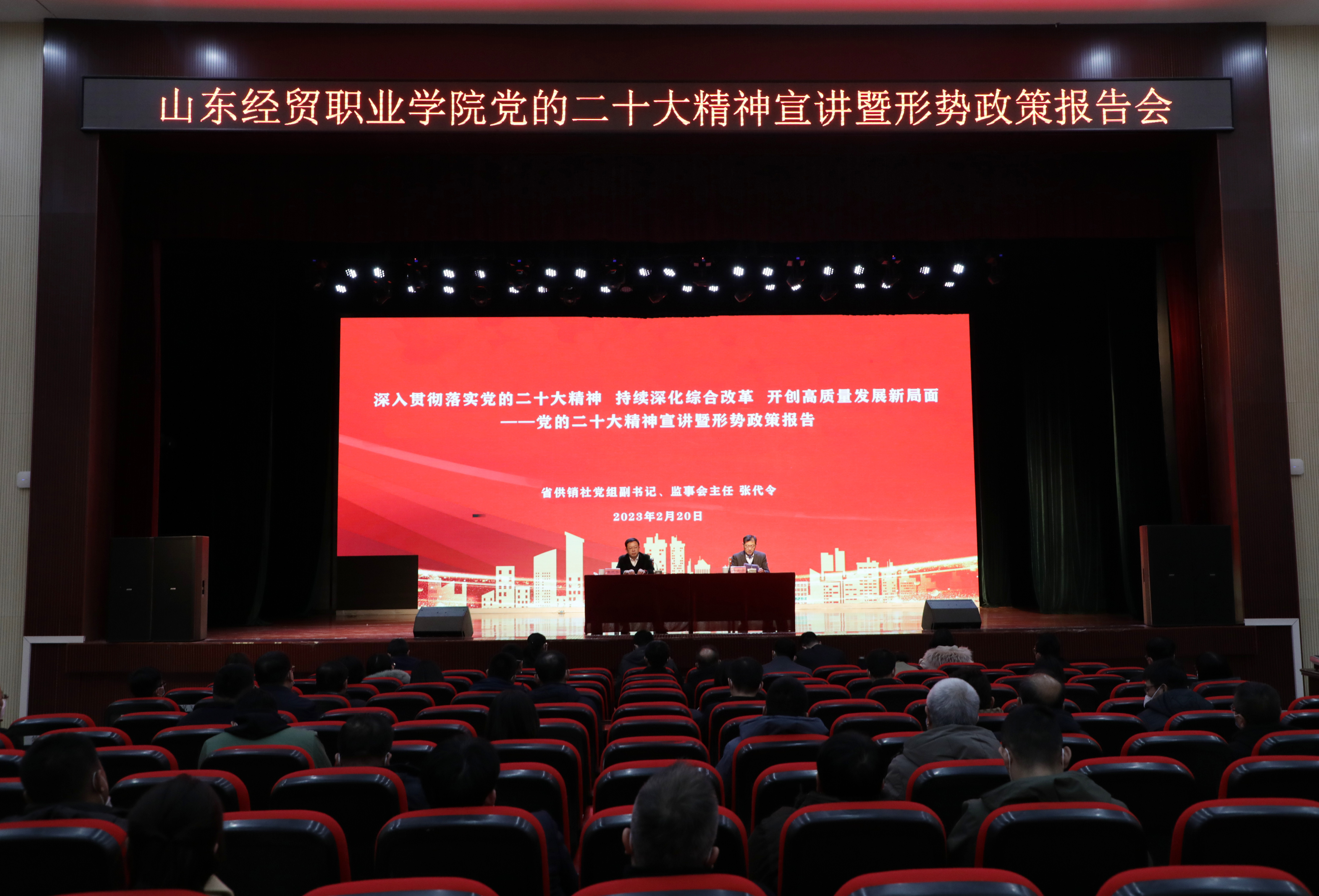 2月20日下午,省供销社党组副书记、监事会主任张代令来篮彩购买app:为师生作党的二十大精神宣讲暨形势政策报告。党委副书记、院长陈卫国主持报告会。