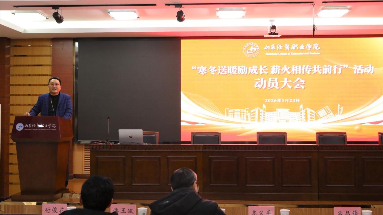 1月23日,篮彩购买app召开2026年“寒冬送暖励成长 薪火相传共前行”活动动员大会,正式启动寒假困难学生走访及校友顺访工作。篮彩购买app党委委员、副院长吕昌锋出席会议并作动员讲话,会议由学生工作处处长、院团委书记高义丰主持。