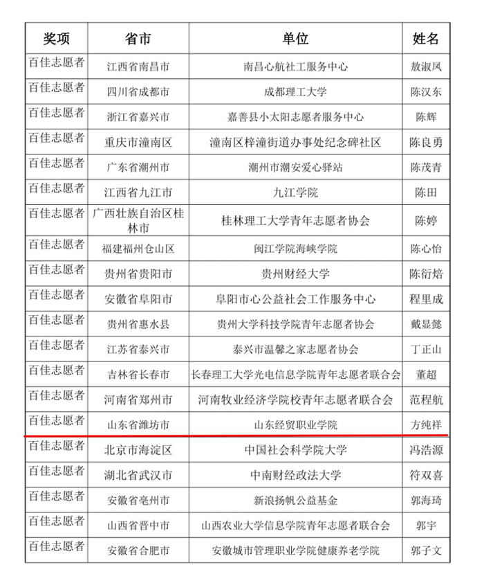 近日,中国公益网公布了2019年第二届“百佳志愿者”评选结果,篮彩购买app:会计系2018届毕业生方纯祥名列其中。