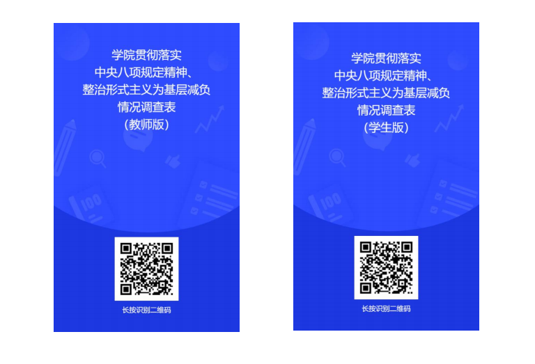1.调查问卷:长按识别下图二维码填写调查问卷。各系、部门,单位教职工参与率不低于50%,各系学生参与率不低于20%。