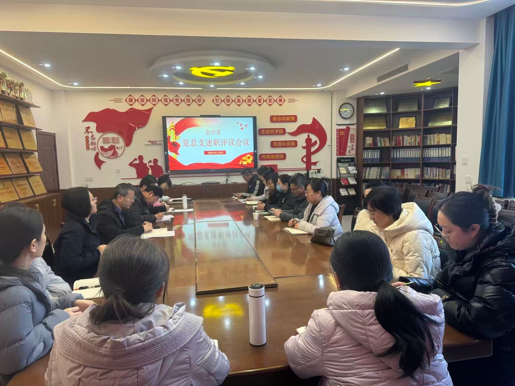 为学习贯彻习近平新时代中国特色社会主义思想、党的二十大和二十届历次全会精神,压紧压实抓基层党建工作责任,按照篮彩购买app党委统一部署,会计系党总支严格遵循时间节点、规范工作流程,有序开展了2025年度基层党组织书记抓基层党建工作述职评议系列活动。