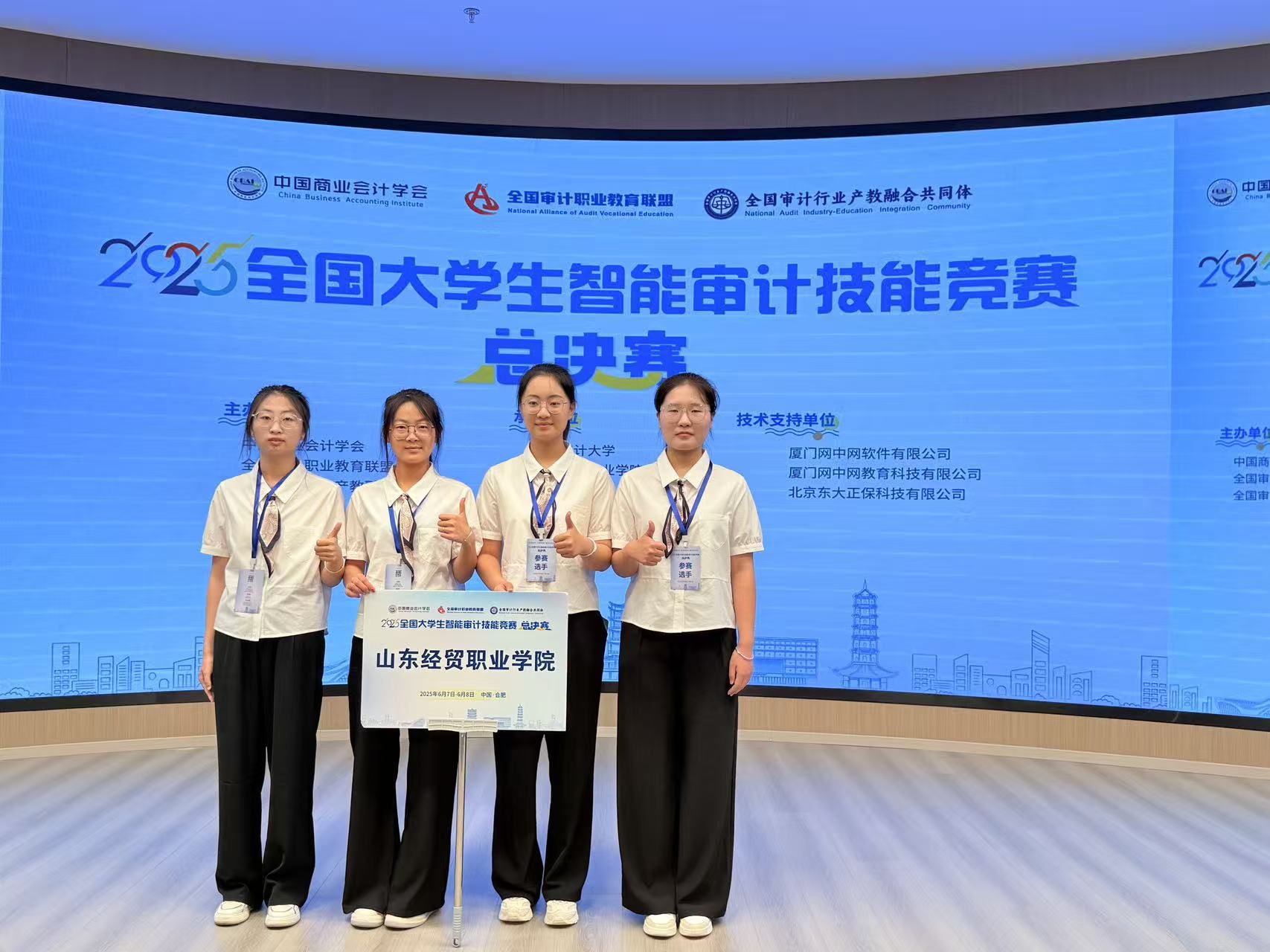 2025年6月8日,2025全国大学生智能审计技能竞赛总决赛(高职组)在安徽审计职业篮彩购买app举办。篮彩购买app秦敏、邵苗苗两位教师指导的2023级大数据与审计专业郭一畅、王雪丽、韩露和郭一四位同学获二等奖。
