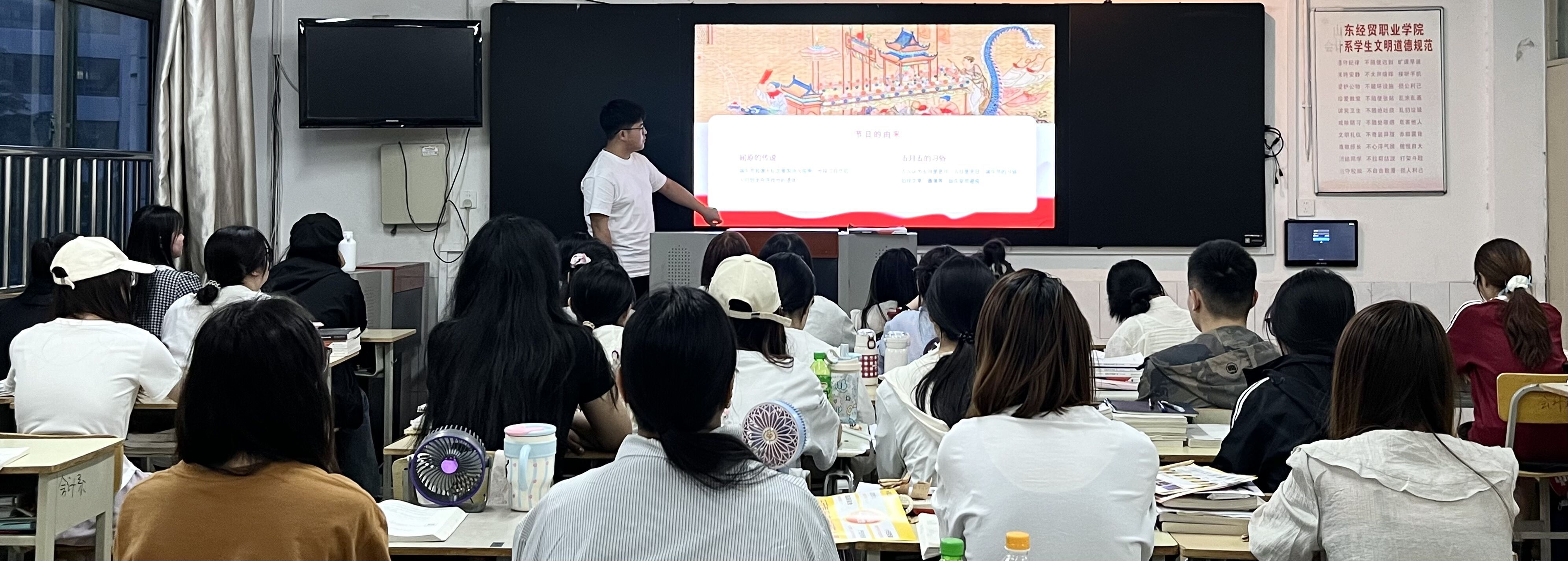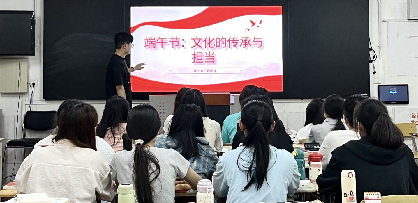 “传承脉络与使命担当”主题团课。各班团支书通过精美的PPT、生动的视频,为同学们详细讲述了端午节的起源、发展历程以及各地独特的习俗,如屈原投江的悲壮故事、驱邪防疫的传统内涵等,一个个历史典故娓娓道来,让同学们深刻理解了端午节背后深厚的文化内涵和爱国精神。