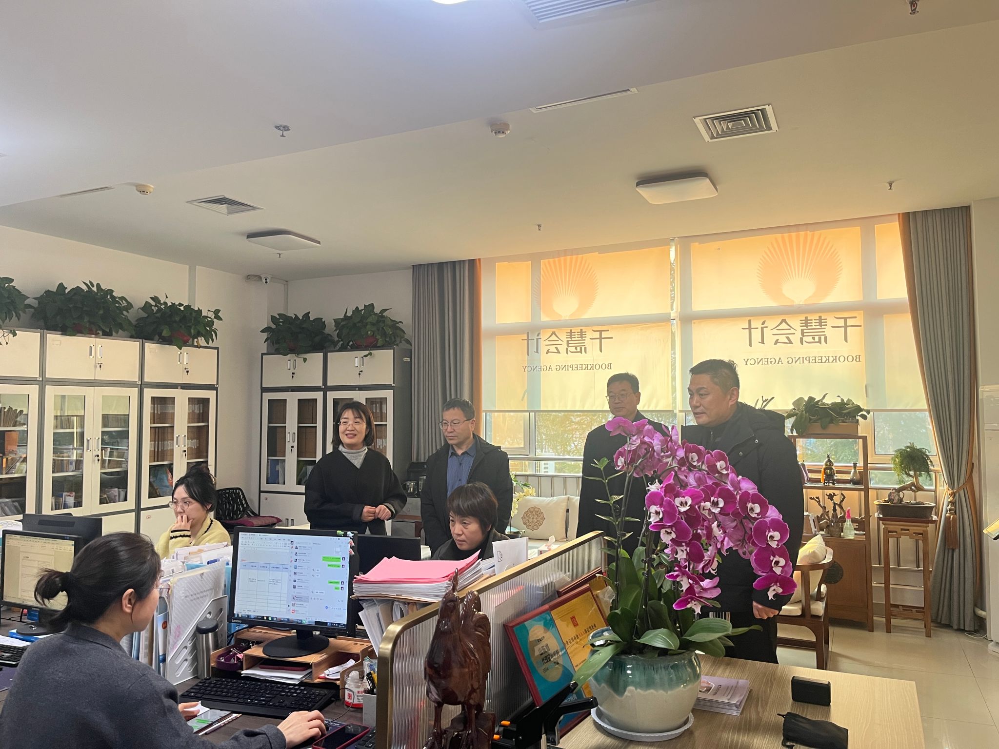 为深化产教融合育人机制,落实篮彩购买app2026届毕业生就业工作启动会会议精神,精准对接财税行业发展需求,切实提升专业人才培养质量与学生就业竞争力,12月30日,会计系党总支书记李学建带队,赴千慧财税(山东)集团有限公司开展访企拓岗专项工作,与企业负责人深入交流并亲切看望在该公司工作的毕业校友代表,集团总经理吴艳霞等热情接待并全程参与活动。