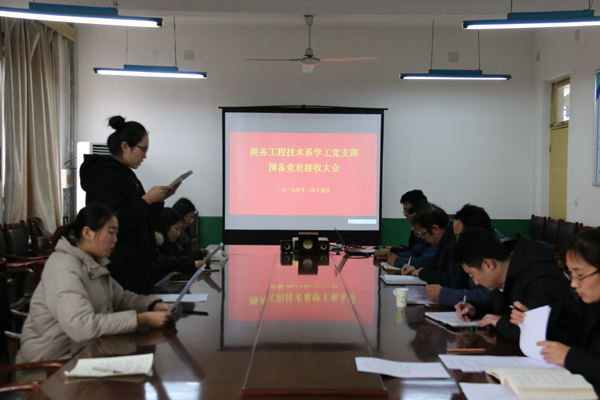 12月15日下午,商务工程技术系学工党支部预备党员接收会议在2号教学楼会议室举行,系党总支书记郭启瑞出席会议,篮彩购买app党委组织员刘光明科长到会指导,支部书记王磊主持,全体党员参加。