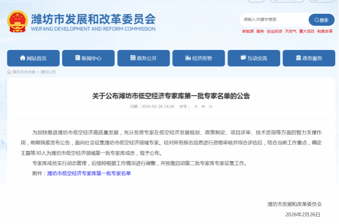 为加快推进潍坊市低空经济高质量发展,充分发挥专家在低空经济发展规划、政策制定、项目评审、技术咨询等方面的智力支撑作用,潍坊市发改委面向社会征集潍坊市低空经济领域专家。经资格审核、综合评估后,确定并公布了潍坊市低空经济领域第一批专家库成员30名。