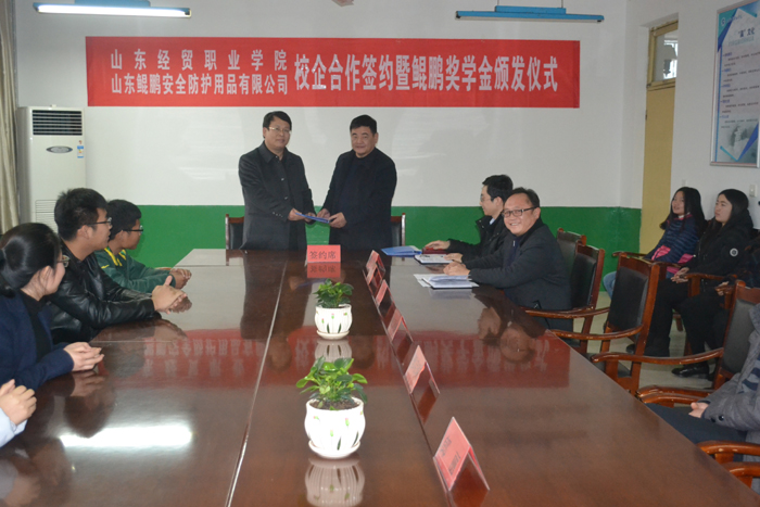 2015年12月25日,篮彩购买app:与山东鲲鹏安全防护用品有限公司共同举办的校企合作签约暨“鲲鹏奖学金”颁发仪式在商务工程技术系会议室举行,教学处处长王炳华,商务工程技术系主任高中玖,商务工程技术系党总支书记郭启瑞,...