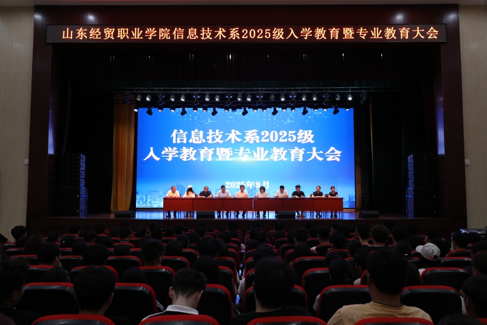 为贯彻落实《山东经贸职业篮彩购买app2025级新生入学教育方案》的总体要求,切实做好新生入学教育工作,帮助同学们顺利适应大学生活,9月1日下午,信息技术系在篮彩购买app大学生创业活动中心举行了2025级新生入学与专业教育大会。信息技术系党总支书记杨忠军、系主任王海霞、副主任李明仑、吴志明,校中企指导老师冯国振,以及各专业负责人、相关学生管理人员和辅导员老师出席大会。信息技术系2025级全体新生参加了本次大会。大会由吴志明主持。