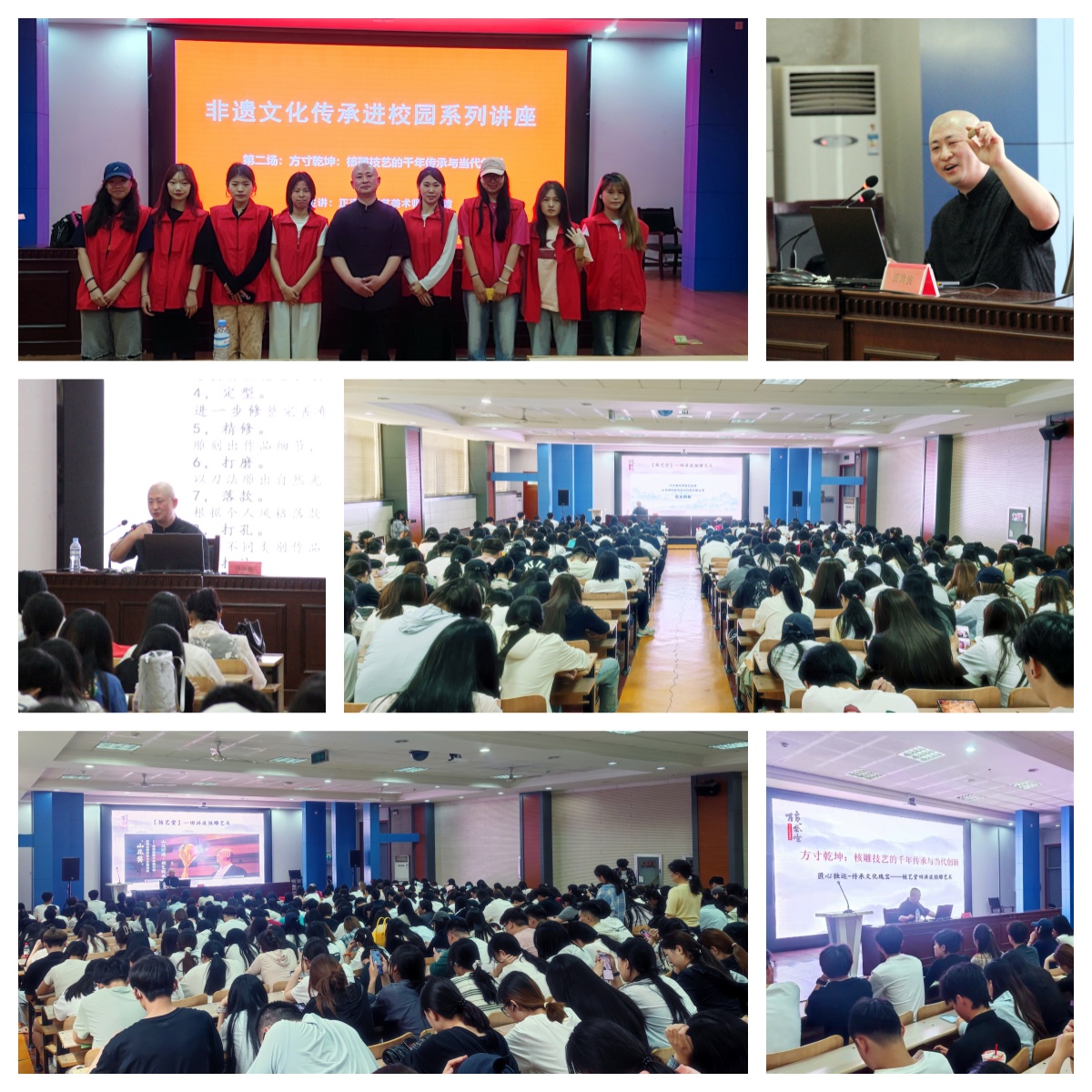最后主持人郭弟强教授向田洪波大师致谢并告诉同学们,“非遗文化传承进校园”系列讲座活动旨在通过多元形式推动传统文化与校园教育深度融合,后续还将推出年画、陶艺、剪纸等主题讲座。本场核雕讲座不仅让师生领略了国家级非遗的独特魅力,更在青年学子心中播下了传承创新的种子,为古老技艺的当代发展注入了青春力量。