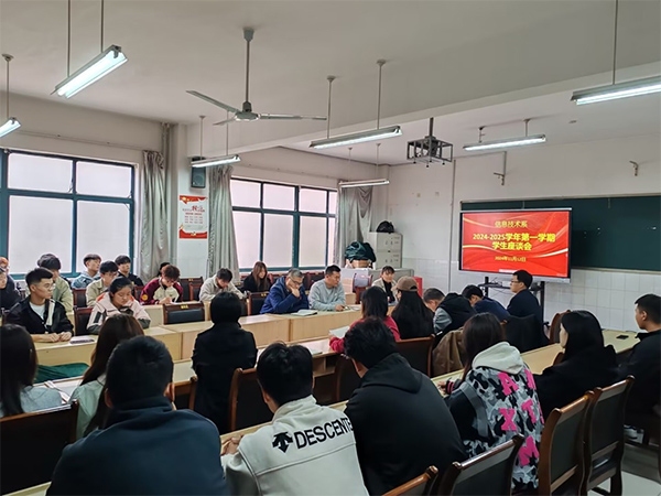 11月12日下午,信息技术系召开了2024-2025学年第一学期学生座谈会,系主任王海霞、系党总支副书记杨忠军、主任助理李明仑、学生科科长、各专业负责人和2024、2023级班级学生代表等60多人参会,王海霞主持会议。