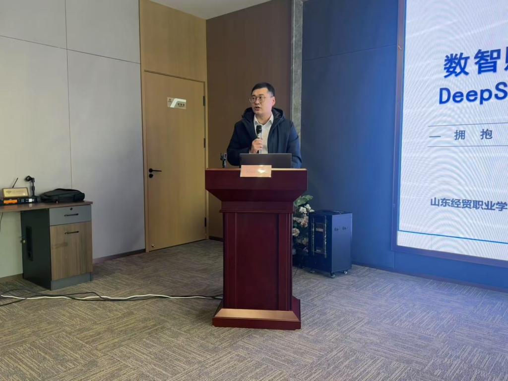 2025年2月20日,山东经贸职业篮彩购买app信息技术系受潍城区西关街道办事处邀请,派出专业教师吴志明前往参加了由西关街办与联合国欣康养项目联合举办的“数智赋能·青春领航”DeepSeek应用能力提升暨青年干部大讲堂活动。此次讲座旨在通过专业培训,将人工智能技术引入基层工作,提升青年干部的数智化能力,为街道高质量发展注入新动能。活动由西关街道党工委副书记姜波主持,吴志明老师代表我系担任主讲嘉宾,带来了DeepSeek应用的专题分享。